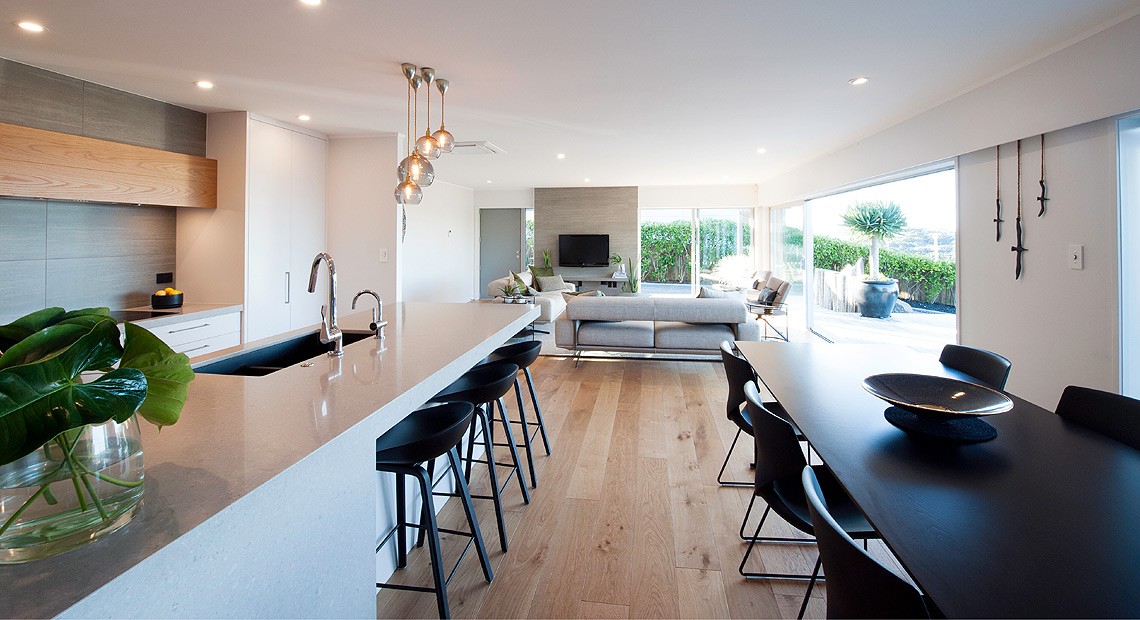 Open plan living enhances the clients desired apartment feel to their home.
